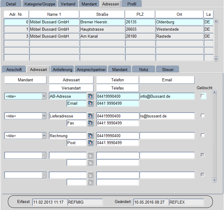 Es besteht die Möglichkeit folgende Adressarten zu erfassen: