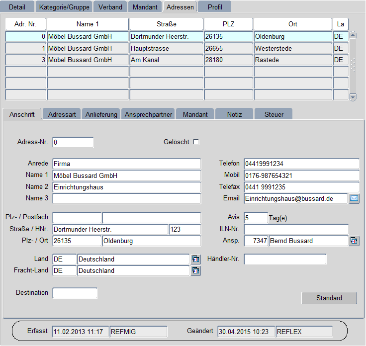 Kundenstamm Adressen Anschrift