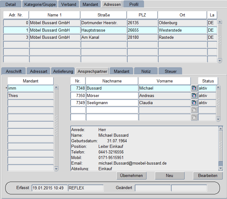 Mit dem Button „Neu" können weitere Ansprechpartner erfasst werden.