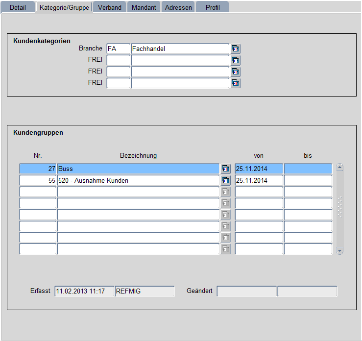 Kundenstamm Kategorie/Gruppe