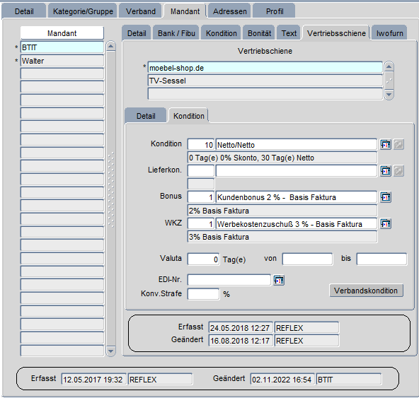 Kundenstamm - Mandant / Vertriebsschiene / Kondition