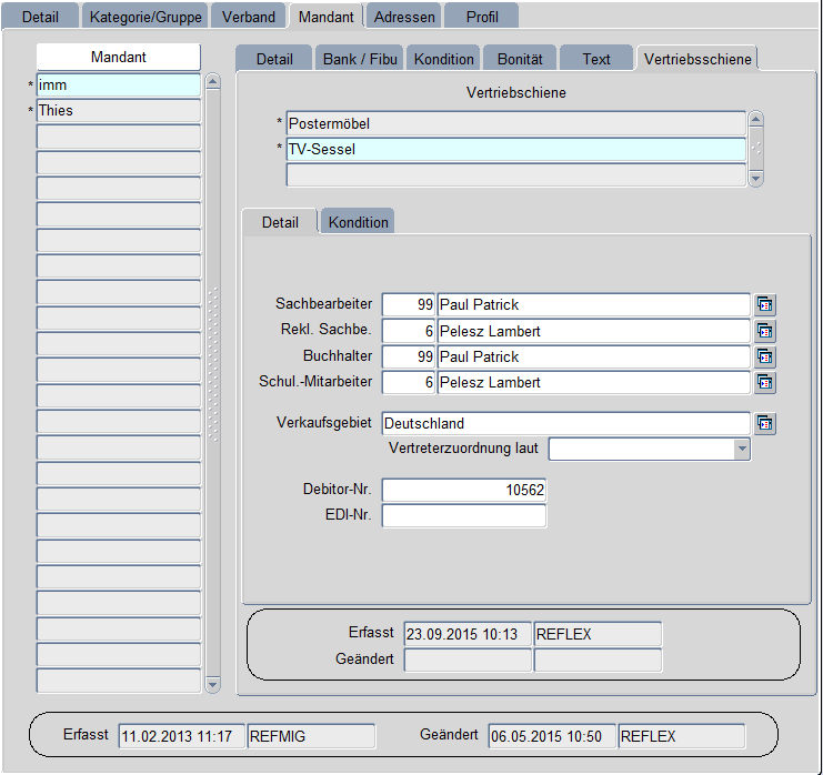 KundeKundenstammKundenstamm Mandant Kundenstamm Mandant Vertriebsschiene Kundenstamm – Mandant / Vertriebsschiene die Informationen zu den verschiedenen Vertriebsschienen der Kunden-Mandantbeziehung können an dieser Stelle gepflegt werden. Vertriebsschiene