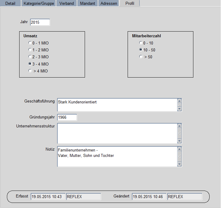 Die Maske dient der Hinterlegung von Profildaten des Kunden.