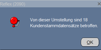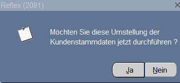 Nach Auswahl der neuen Kundenwerte wird der Vorgang mit dem Button "Starten" gestartet. Hier erscheint das erste Meldefenster mit der Anzahl der betroffenen Kunden. Nach dem Bestätigen kommt eine abschließende Abfrage des Systems, ob Sie die Umstellung der Kundenstammdaten jetzt durchgeführt möchten (Ja/Nein).