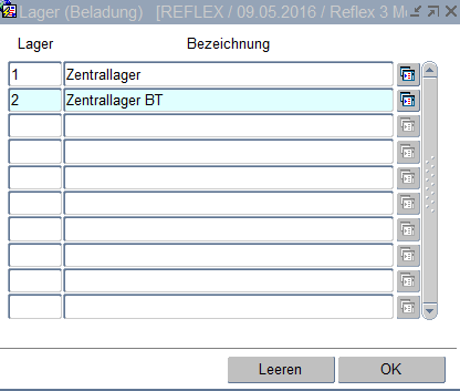 Mit dem Button Leeren werden evtl. aufgeführte Läger aus der Maske entfernt.