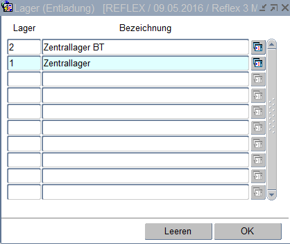Mit dem Button Leeren werden evtl. aufgeführte Läger aus der Maske entfernt.
