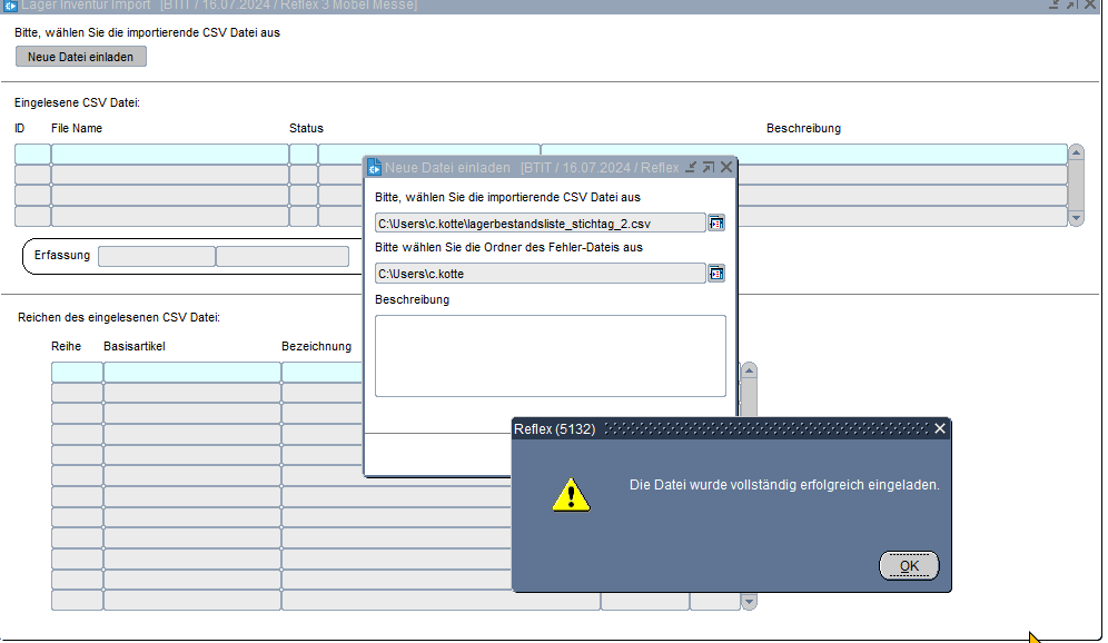 - Wenn kein Fehler aufgetreten ist: „Die Datei wurde vollständig erfolgreich eingeladen.”