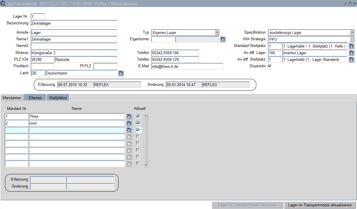 Die Lager-Mandanten-Zuordnung findet in dieser Reiterkarte statt.