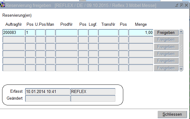Reservierung freigeben - ein reservierter Artikel kann freigegeben werden. Ist ein Artikel für einen Auftrag, einen Produktionsauftrag oder einen Transportauftrag reserviert, so kann diese Reservierung wieder frei gegeben werden.  Mit dem Button "Freigeben" wird die Reservierung des Artikels aufgehoben.