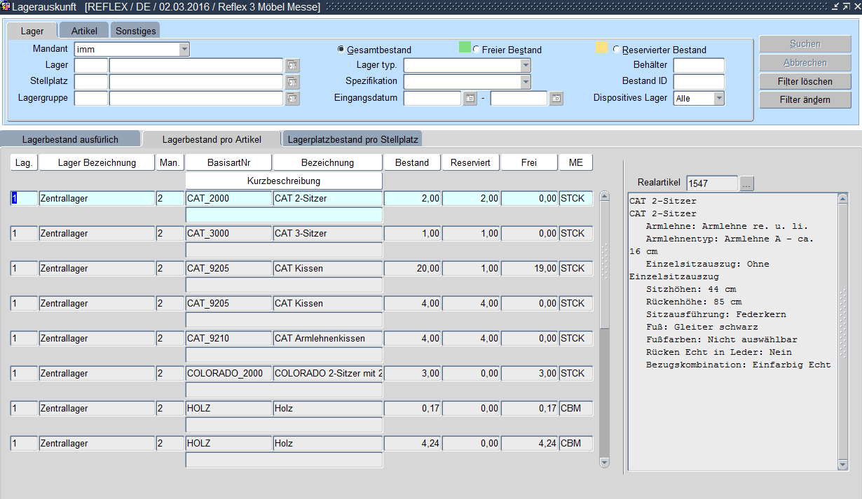 Lagerauskunft - pro Artikel
