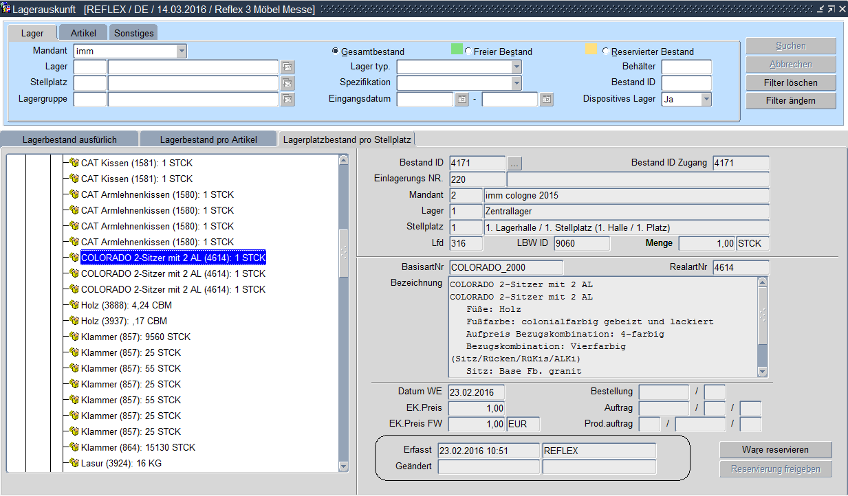 Lagerauskunft - Lagerplatzbestand pro Stellplatz