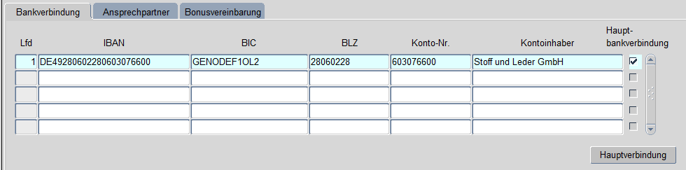 Angabe, ob es sich hierbei um die Hauptbankverbindung des Lieferanten handelt.