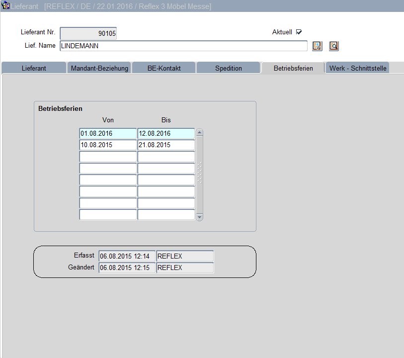 In dieser Form hat man die Möglichkeit, die Betriebsferien des Lieferanten zu hinterlegen.