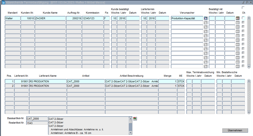 Mit dem Button „Übernehmen" werden alle Liefertermine der Aufträge übernommen, die mit „OK" gekennzeichnet wurden.