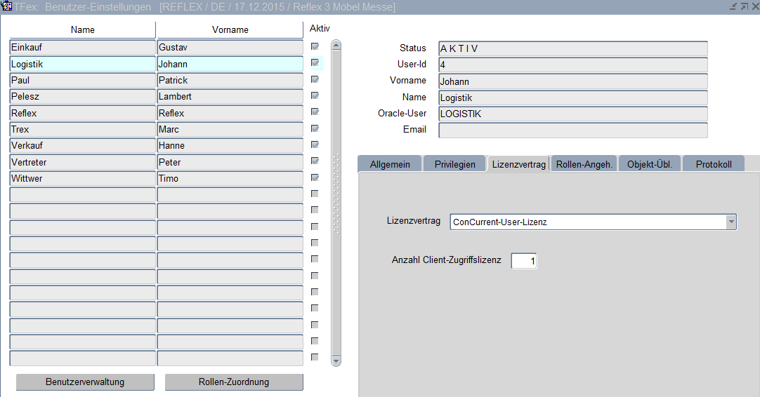 Tree-Forms-Explorer (TFex)TFex-Benutzer-Einstellungen Lizenzvertrag Die Registerkarte "Lizenzvertrag" wird nur beim Superuser eingeblendet.