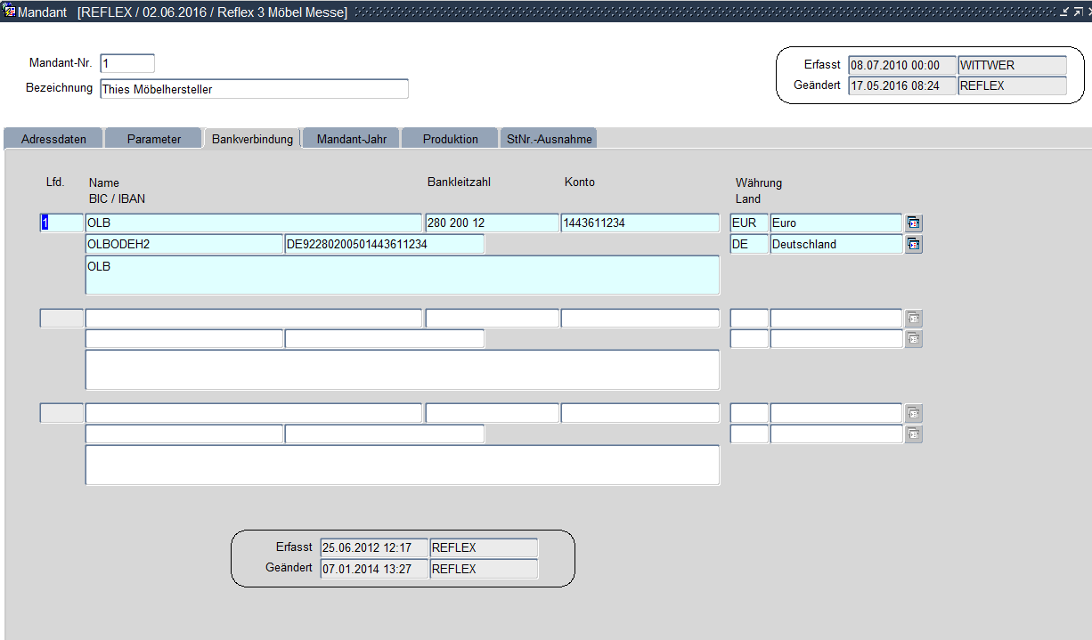 Hier können sämtliche Bankverbindungen des Mandanten gespeichert werden.