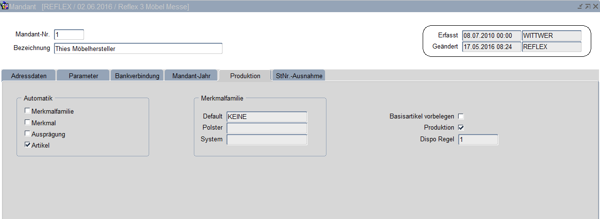 Die Produktionsparameter der Mandantendaten betreffen unter anderem die zentrale Einstellung von verschiedenen wichtigen grundsätzlichen Entscheidungen, die das komplette System betreffen.