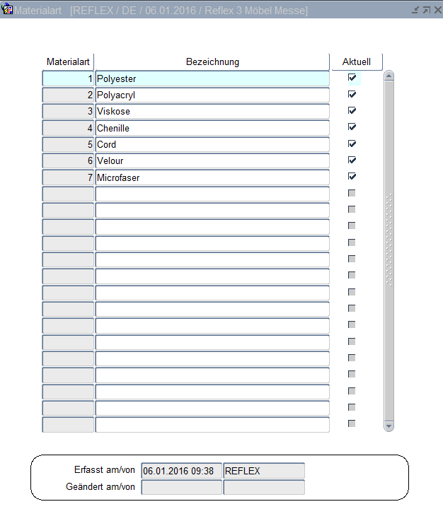 Diese Maske dient der Erfassung und Pflege der Materialarten. Die Materialarten können den Stofffamilien zugeordnet werden.