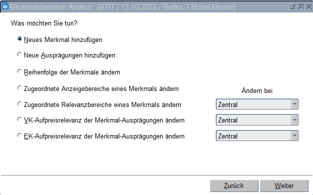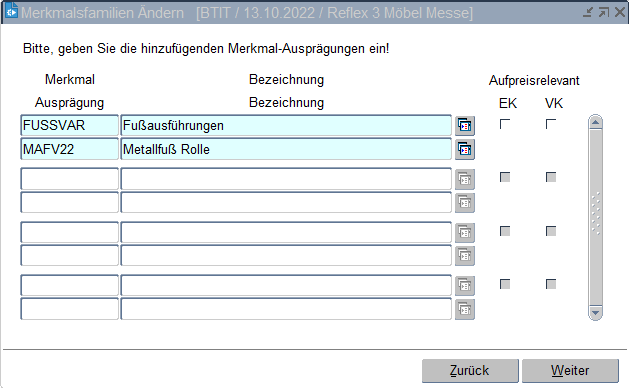 - VK-Aufpreisrelevanz der Merkmal-Ausprägungen ändern