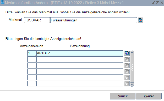 - Zugeordnete Anzeigenbereiche eines Merkmals ändern