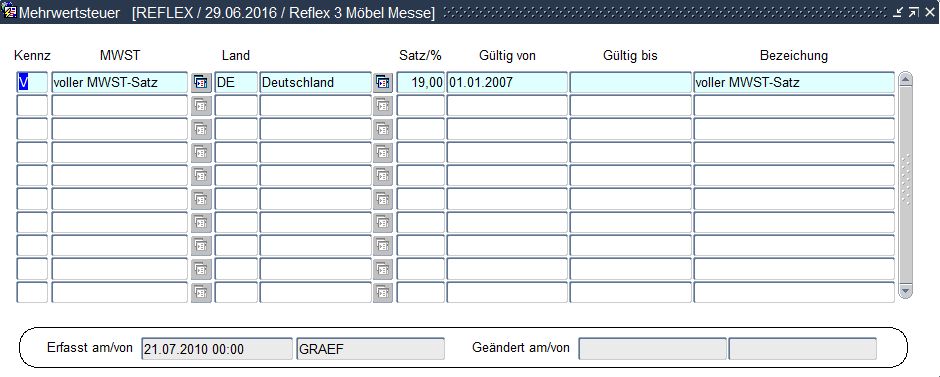 Welche Mehrwertsteuer in der Auftragserfassung bei Warenverkauf an eine Adresse im Land des Mandanten gezogen wird, kann an dieser Stelle hinterlegt werden.