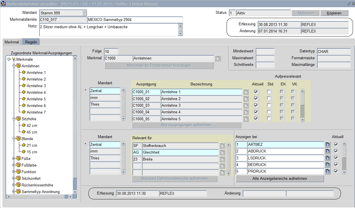 Der Status der Merkmalsfamilie ändert sich erst auf 1 = Aktiv wenn die Schaltfläche aktivieren gedrückt wurde.