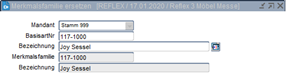Nach Angabe der Basisartikelnummer im oberen Bereich, wird darunter die aktuelle Merkmalsfamilie des Artikels angezeigt.