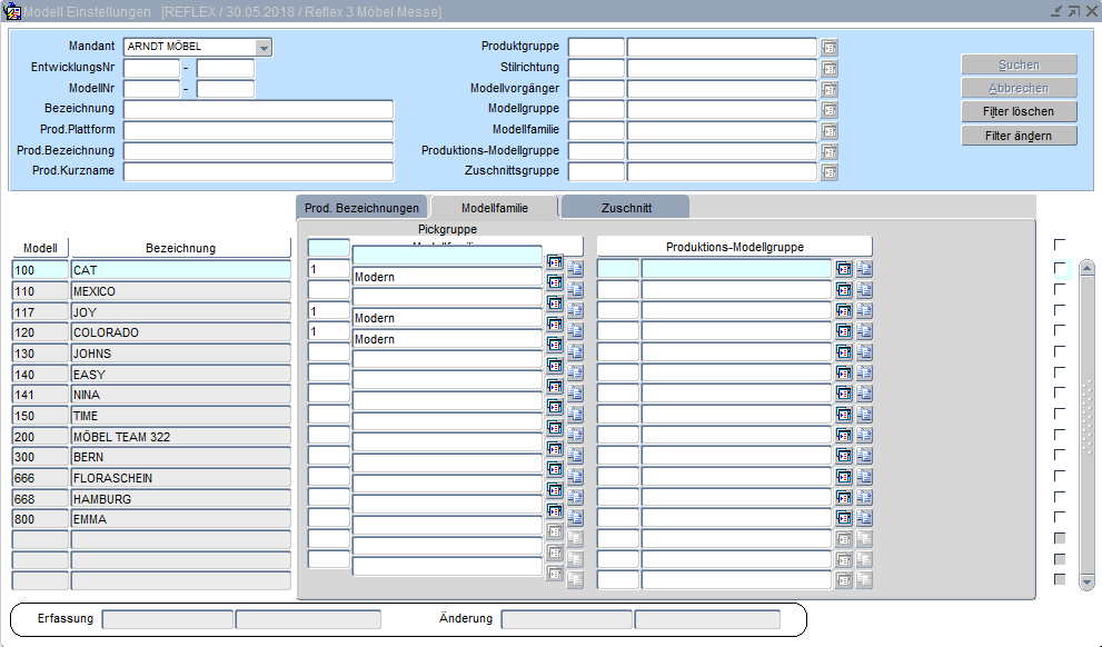 Die Zugehörigkeit der Modelle zu verschiedenen Pickgruppen und der Produktions-Modellgruppen werden hier einzeln hinterlegt oder über die Kopierfunktion einmal hinterlegt und für sämtliche markierte Datensätze kopiert.