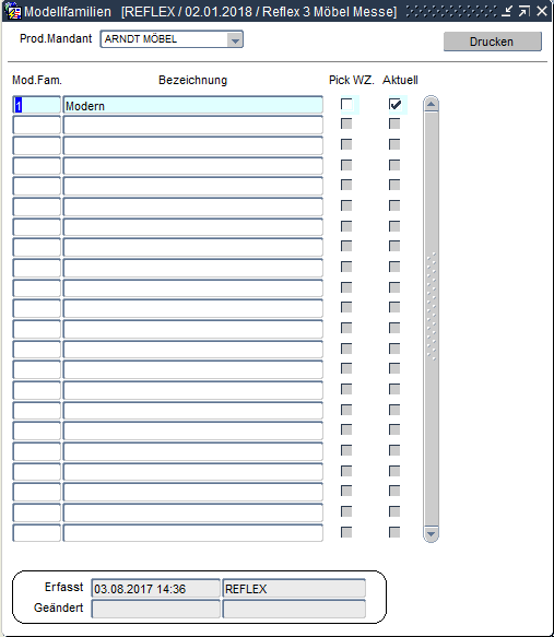 Mit dem Button "Drucken" kann der Druck einer Modellfamilienliste dann gestartet werden.