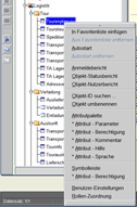 Danach erfolgt die Rollenzuweisung zu den verschiedenen Programmpunkten und Menüordnern wie folgt. Mit einem Klick mit der rechten Maustaste auf dem jeweiligen Menüordner oder Programmpunkt im TFex-Menü wird wieder das Kontextmenü geöffnet und dieses Mal der Punkt "Attributpalette - Attribut Berechtigung" gewählt. Hier wird mittels des Buttons "Hinzufügen" die entsprechende Rolle jedem einzelnen Programmpunkt oder Menüpunkt hinzugefügt. Hier können aus einer Rolle die Programmpunkte oder Ordner auch wieder entfernt werden.