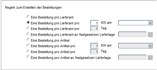 Es kann definiert werden, wie die Aufteilung der zu erstellenden Bestellungen sein sollen.