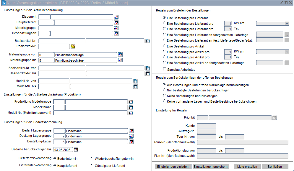 Beschaffungsdisposition - Neue Vorschlagsliste erstellen