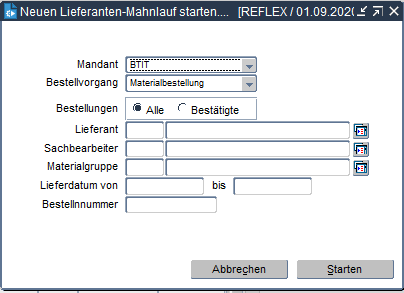 Für den Lieferanten-Mahnlauf stehen die folgenden Parameter zur Verfügung: