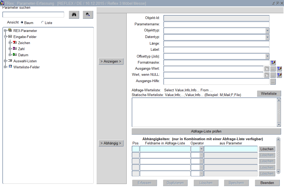 Zeigt den markierten Parameter im Baum zur Ansicht und Bearbeitung auf der rechten Seite an.