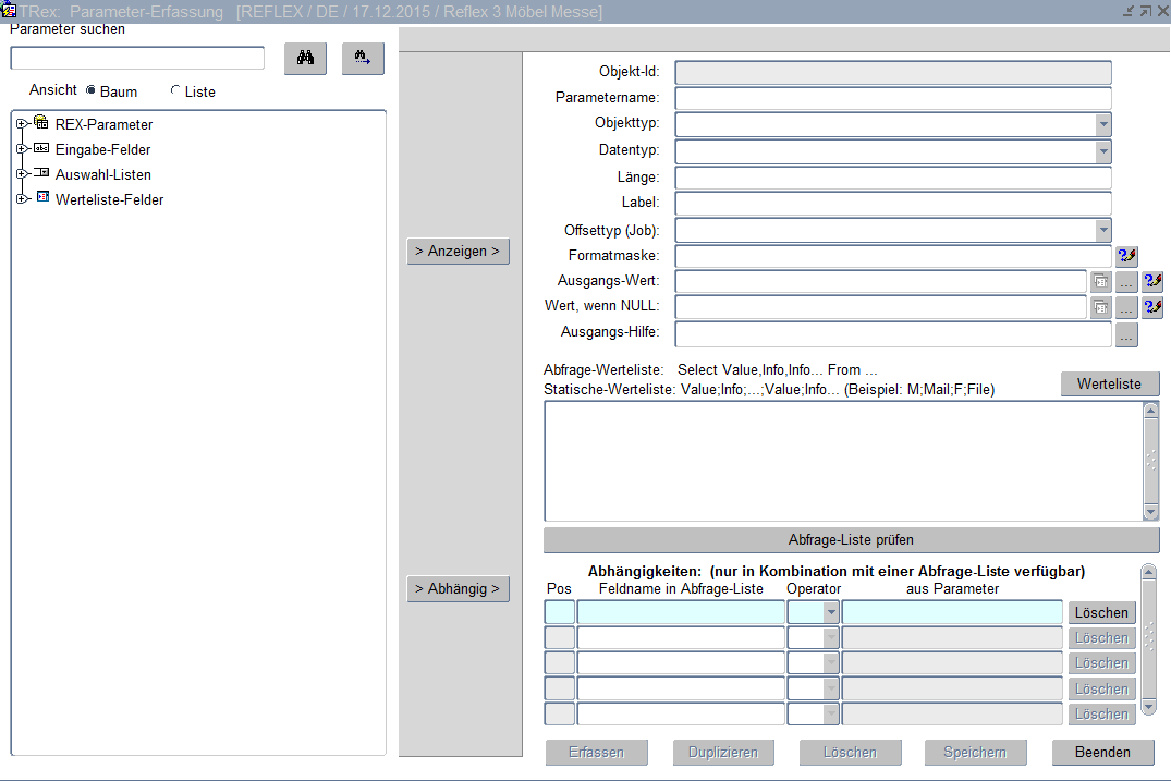 Zeigt den markierten Parameter im Baum zur Ansicht und Bearbeitung auf der rechten Seite an.