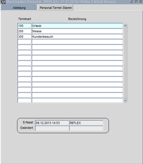 AdminPersonal Abteilung Personal - Termin Stamm Personal Terminstamm An dieser Stelle werden die Terminstammdaten für die Personen hinterlegt.