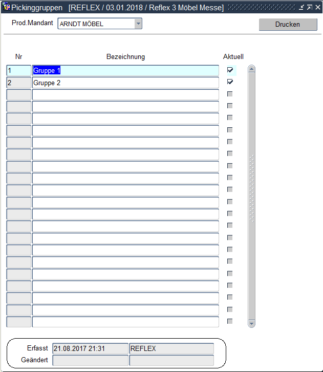 Mit dem Button "Drucken" kann der Druck einer Pickinggruppenliste gestartet werden.