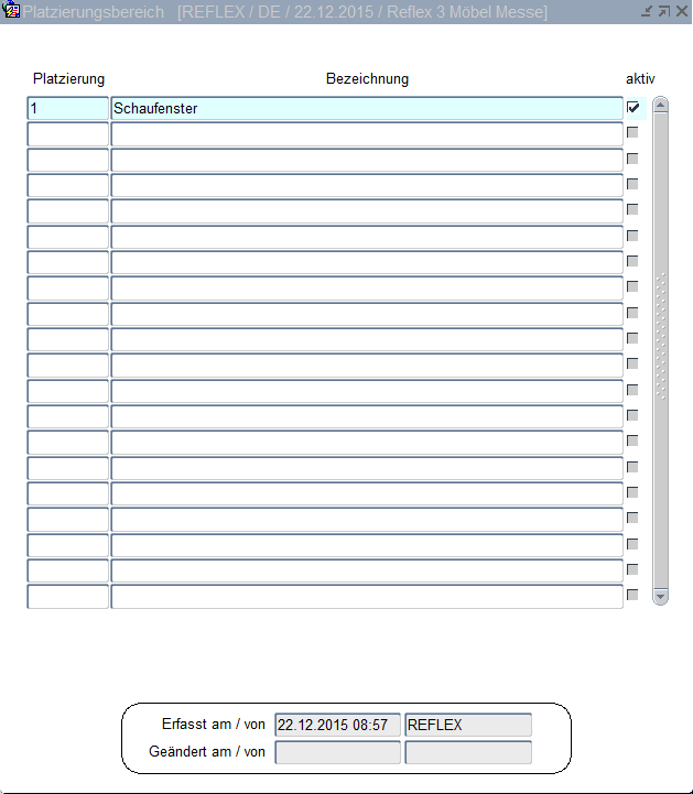 In der Auftragserfassung kann je Kommission ein Platzierungsbereich eingegeben werden. Die Stammdaten hierfür werden an dieser Stelle gespeichert.
