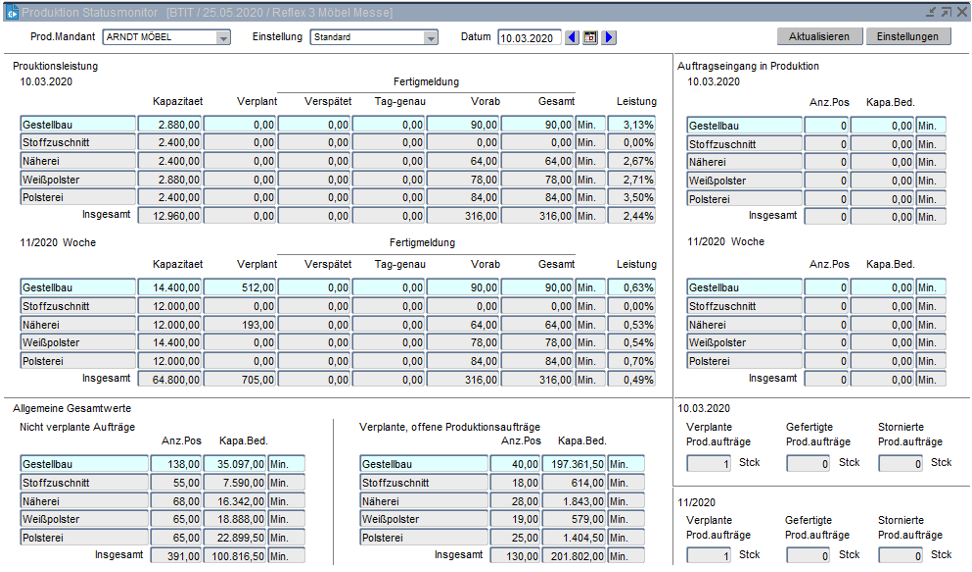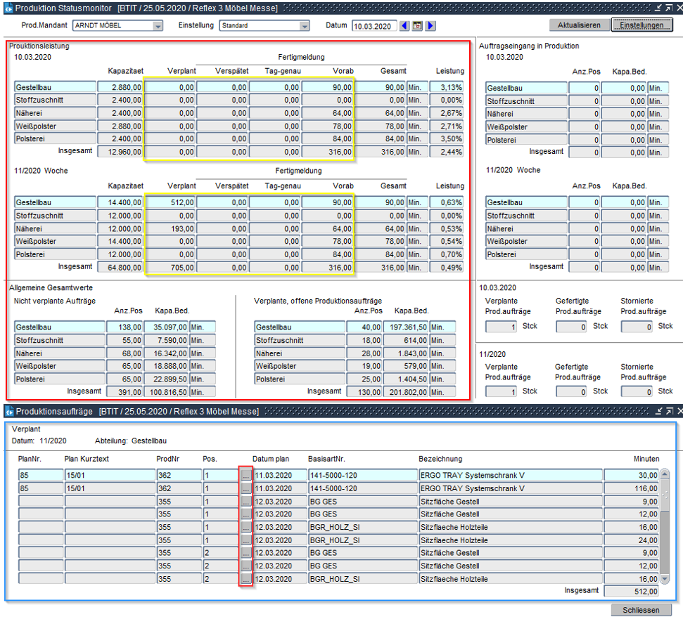 Im letzten Bereich sind die verplanten, gefertigten und stornierten Aufträge pro Tag oder Woche sichtbar.