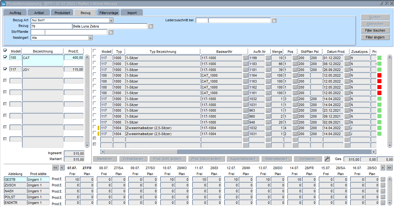 Produktionsplanung - Filter Bezug