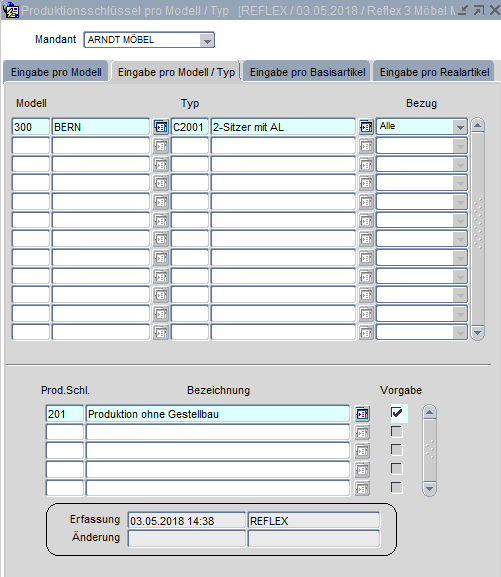 Produktionsschluessel Model/Typ - Eingabe pro Modell/Typ