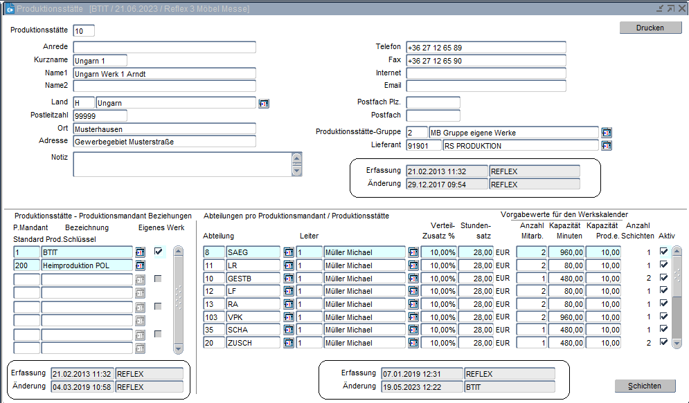 Hier werden die Produktionsstätten (Lieferwerke) gepflegt. Jeder Produktionsmandant kann x verschiedene Produktionsstätten betreiben.