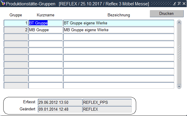 Es können verschiedene Gruppen angelegt werden (Gruppierung der Produktions-Stätten) z. B. Kooperanten (Dient nur zu Auswertungszwecken)