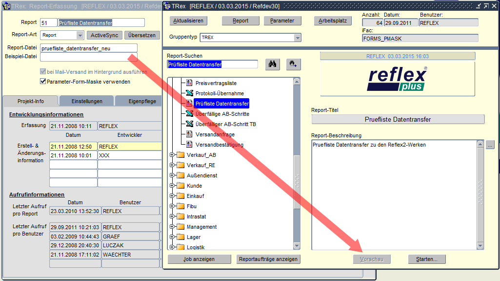Wird im Eingabefeld „Beispiel-Datei“ in der „Report-Erfassung“ keine Datei eingegeben, so wird die Schaltfläche „Vorschau“ im Report-Explorer deaktiviert.