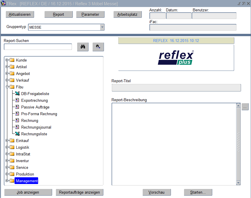 - Bei Report/Listen ist dieser Menüpunkt nicht aktiviert.