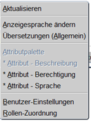 - Öffnet den Attribut-Dialog zur Bearbeitung der Gruppen-Übersetzungen oder Report-Übersetzungen.