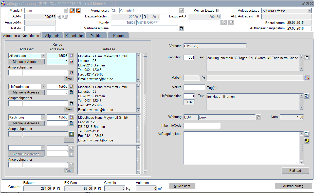 Kunden-Nr., Rechnungsadress-Nr. sowie Rechnungsadresse.