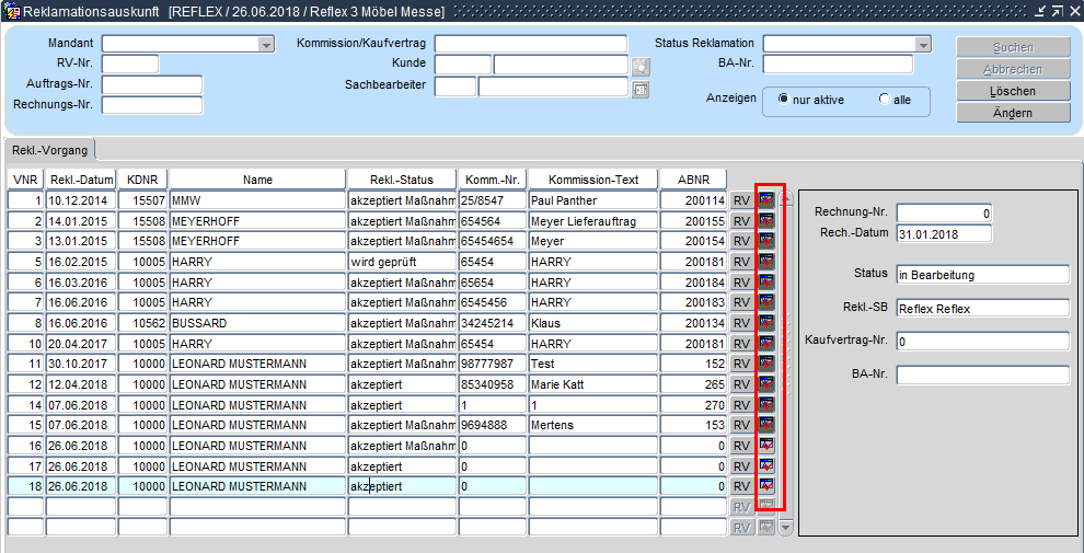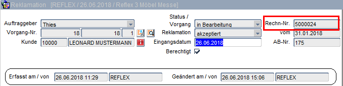 Nach der „Vorerfassung“ einer Reklamation ohne Rechnung im gleichnamigen Programm und Zuordnung der Reklamationen im Reklamationsvorgang kann eine Rechnungs-Nr. nachträglich zugewiesen werden, wenn sich der Status der Reklamation „in Bearbeitung“ befindet.