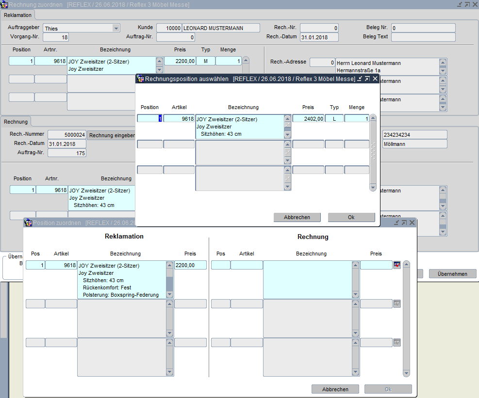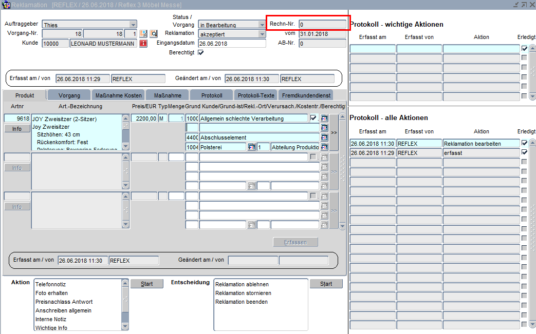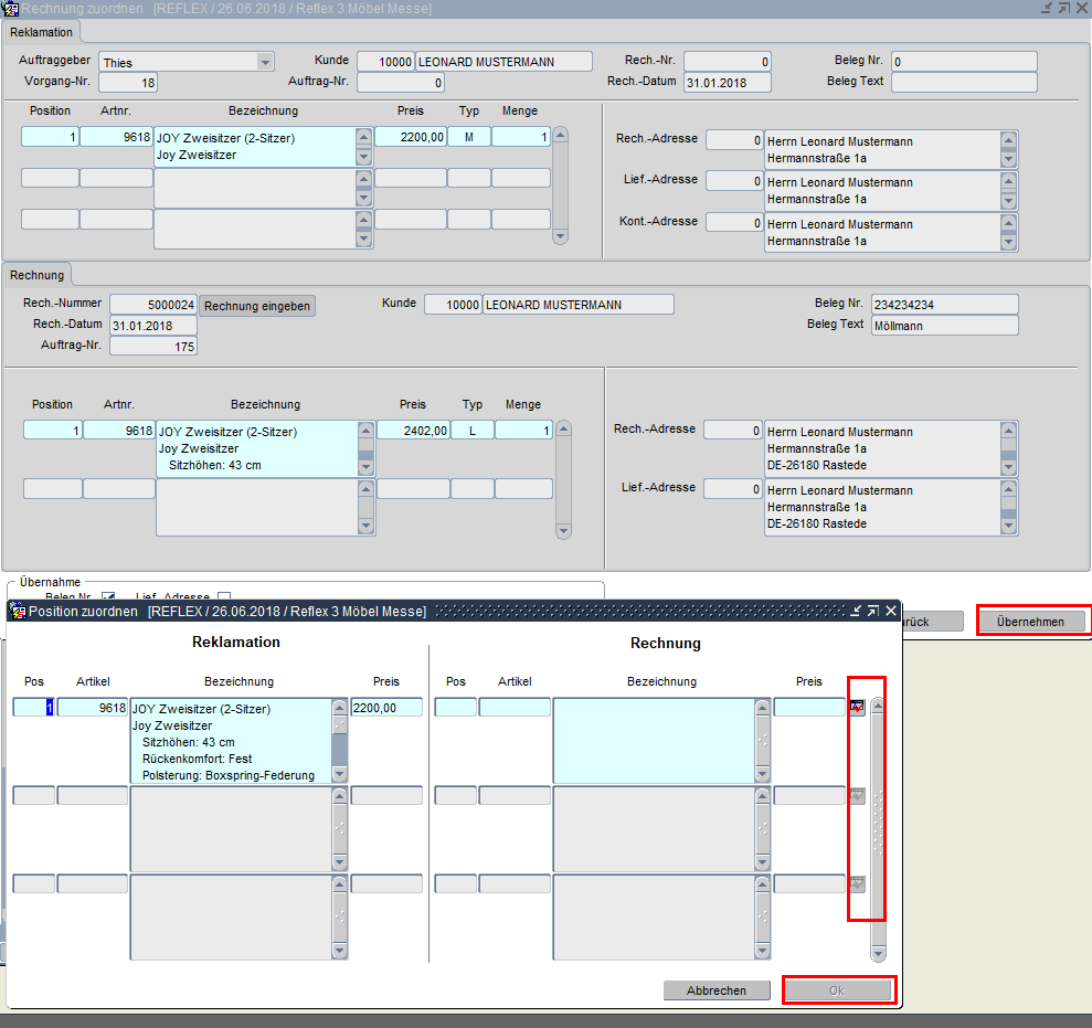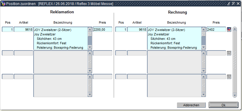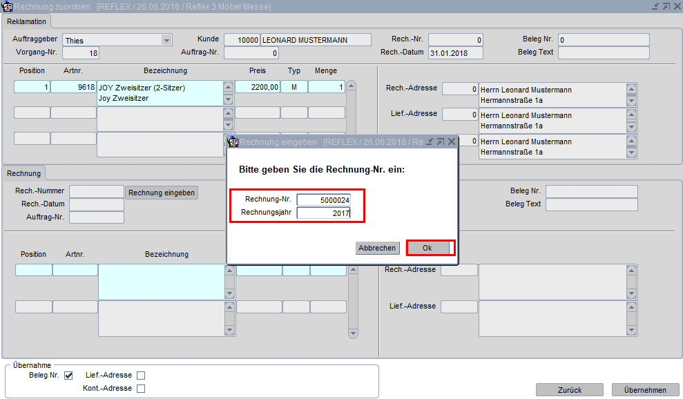 Mit OK ist dann die Rechnung endgültig dem Reklamationsvorgang zugeordnet.