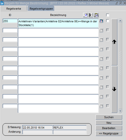 Über die Schaltfläche ==>Regelgruppe besteht die Möglichkeit, bestehende Regelwerke zu einer Regelwerkgruppe zu generieren.